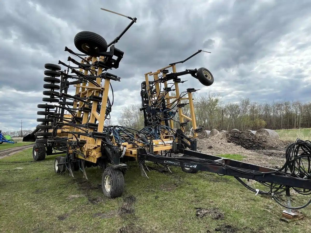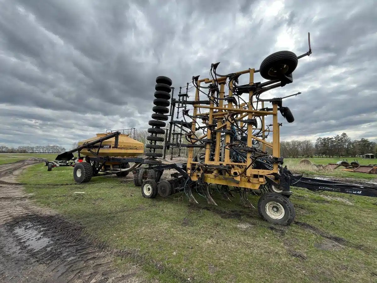 33' pneumatic seeder with 2250 air cart, double hopper, wide rubber rollers, twin row openers, 250 bushel tank. Also includes a liquid kit,